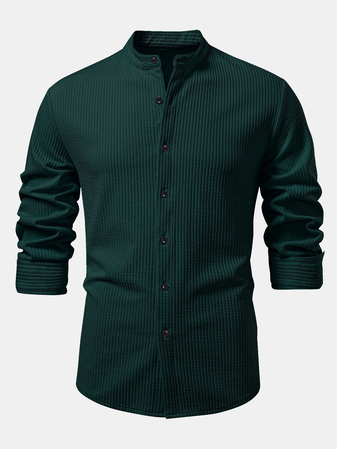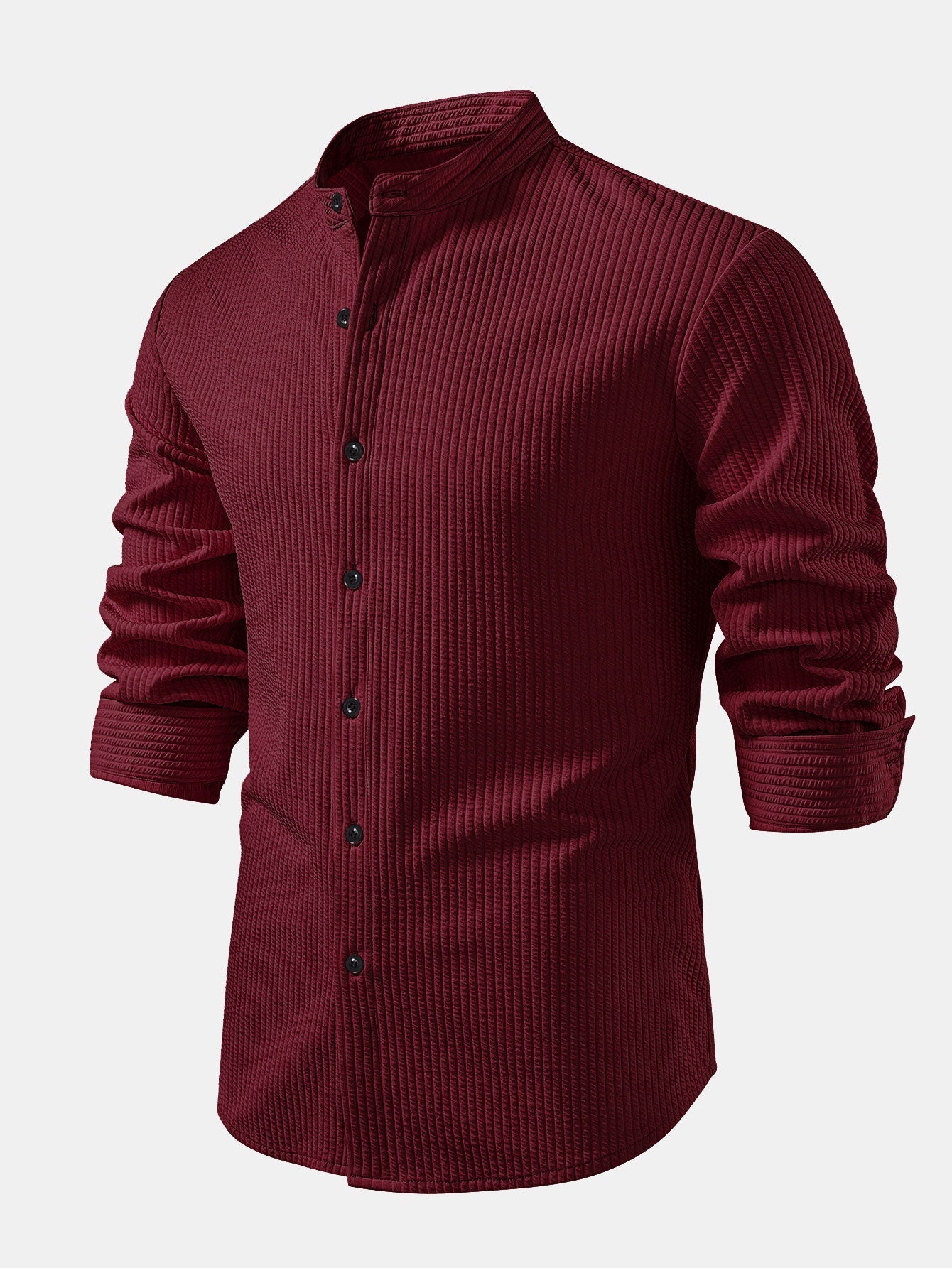 Questa camicia da uomo a maniche lunghe e colletto alto è realizzata in un tessuto morbido a trama bouclé. Il colletto alto semplice crea un look elegante e informale. La parte anteriore con bottoni consente di indossarla e toglierla facilmente. Che sia indossata da sola o con una giacca, è perfetta per l'uso quotidiano, i tragitti o le vacanze.